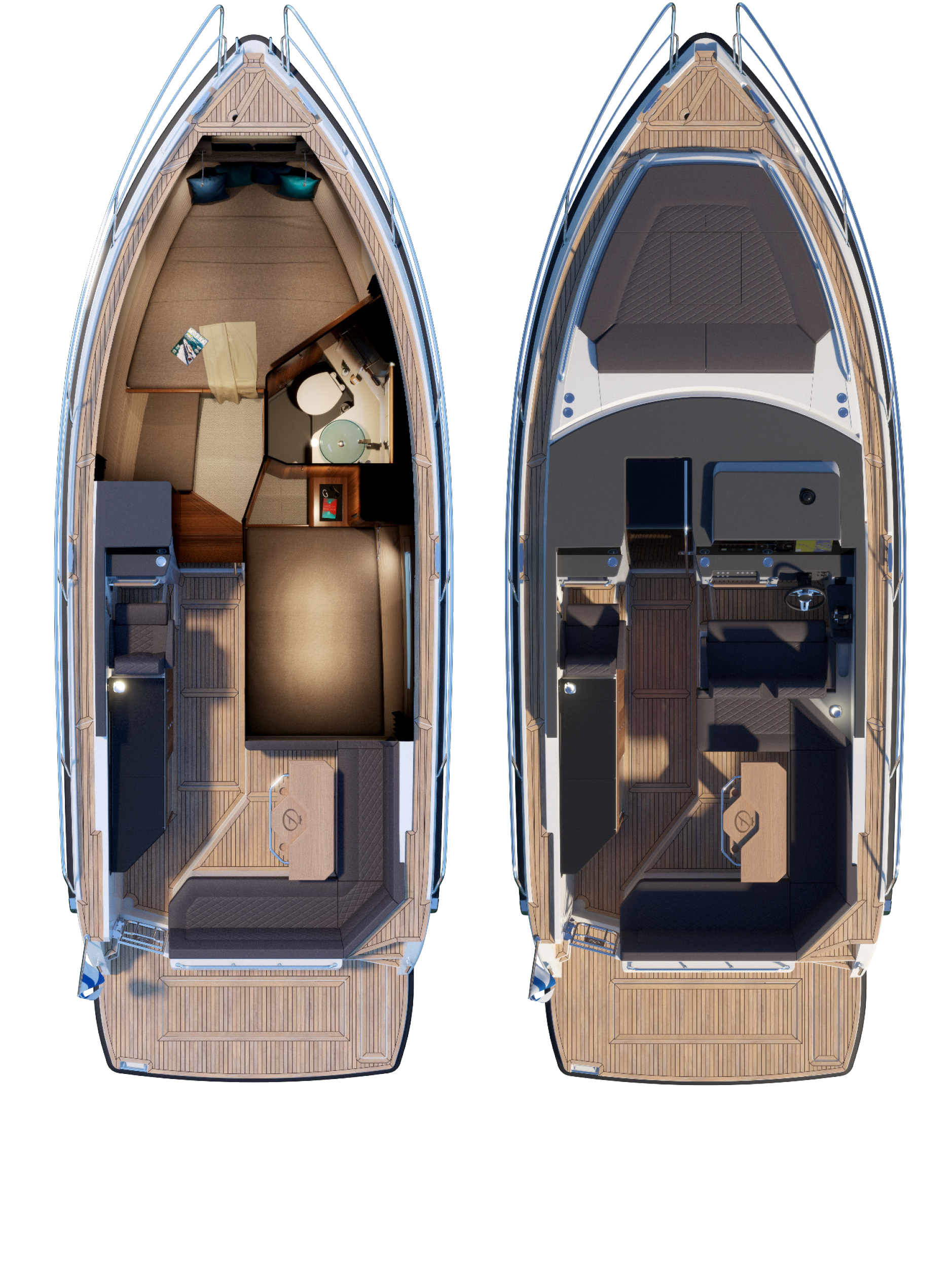 Tutti questi sviluppi progettuali, l’ingegnosità e la versatilità vi porteranno a provare la sensazione di una vera imbarcazione da diporto, ma con la praticità e la semplicità di un moderno cruiser di 30 piedi. Potreste dimenticare facilmente che non è necessario prenotare un posto barca tra i superyacht del vostro prossimo porto di scalo.