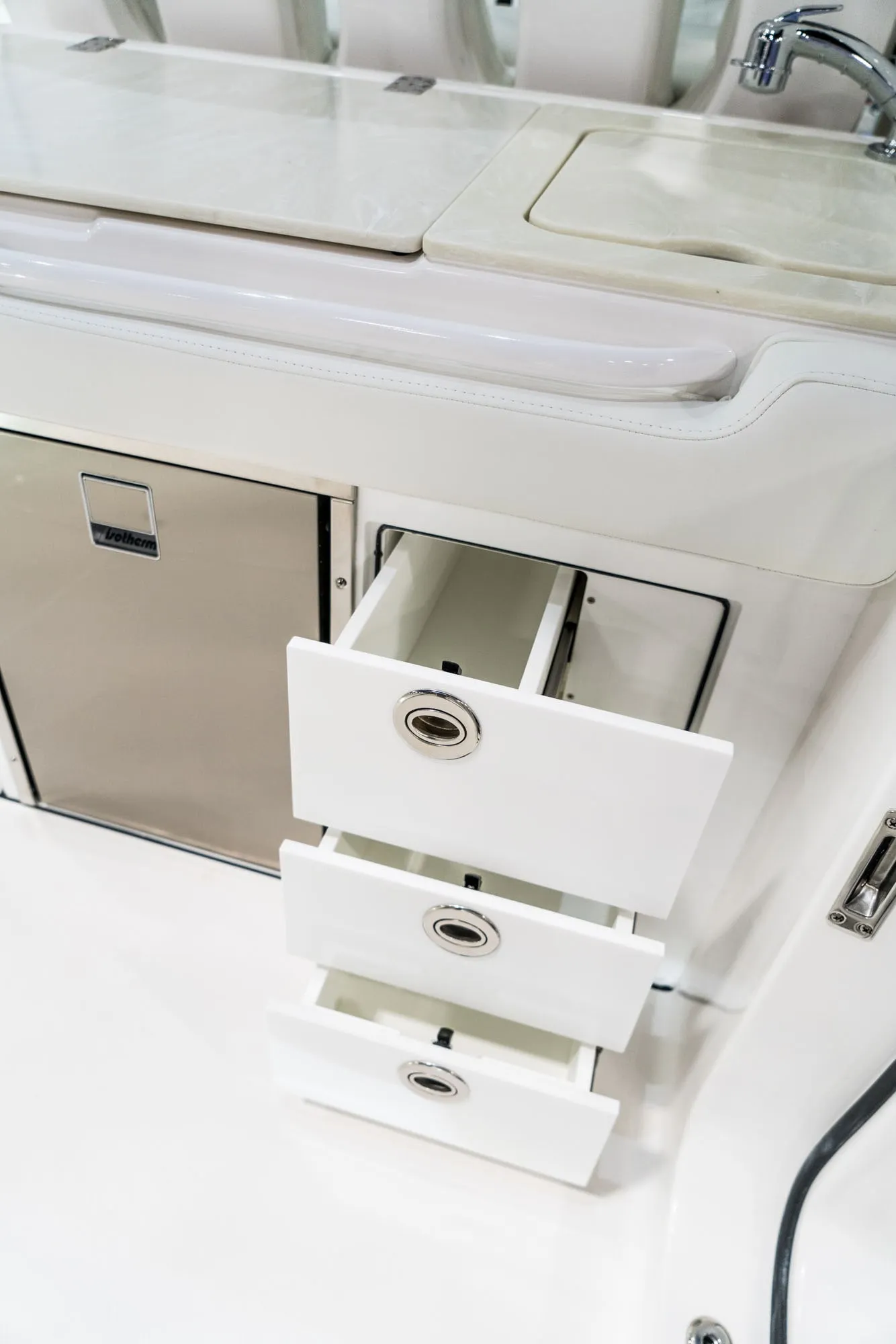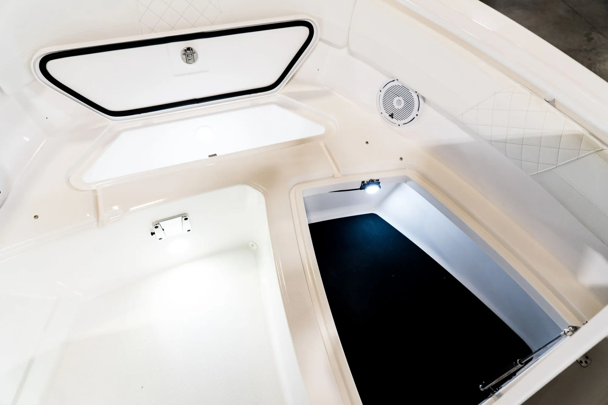 Il modello 262CX vanta un design ben studiato per lo spazio di stivaggio a babordo, dalle canne da pesca all’attrezzatura per lo snorkeling, fino al tavolo di prua: è pronto per la tua avventura.
