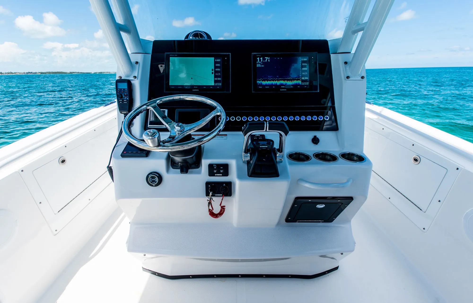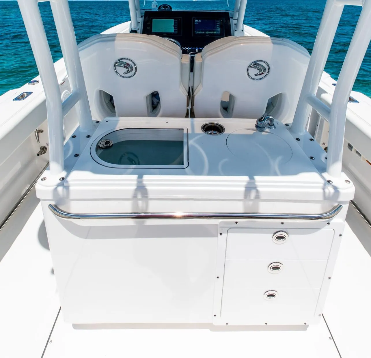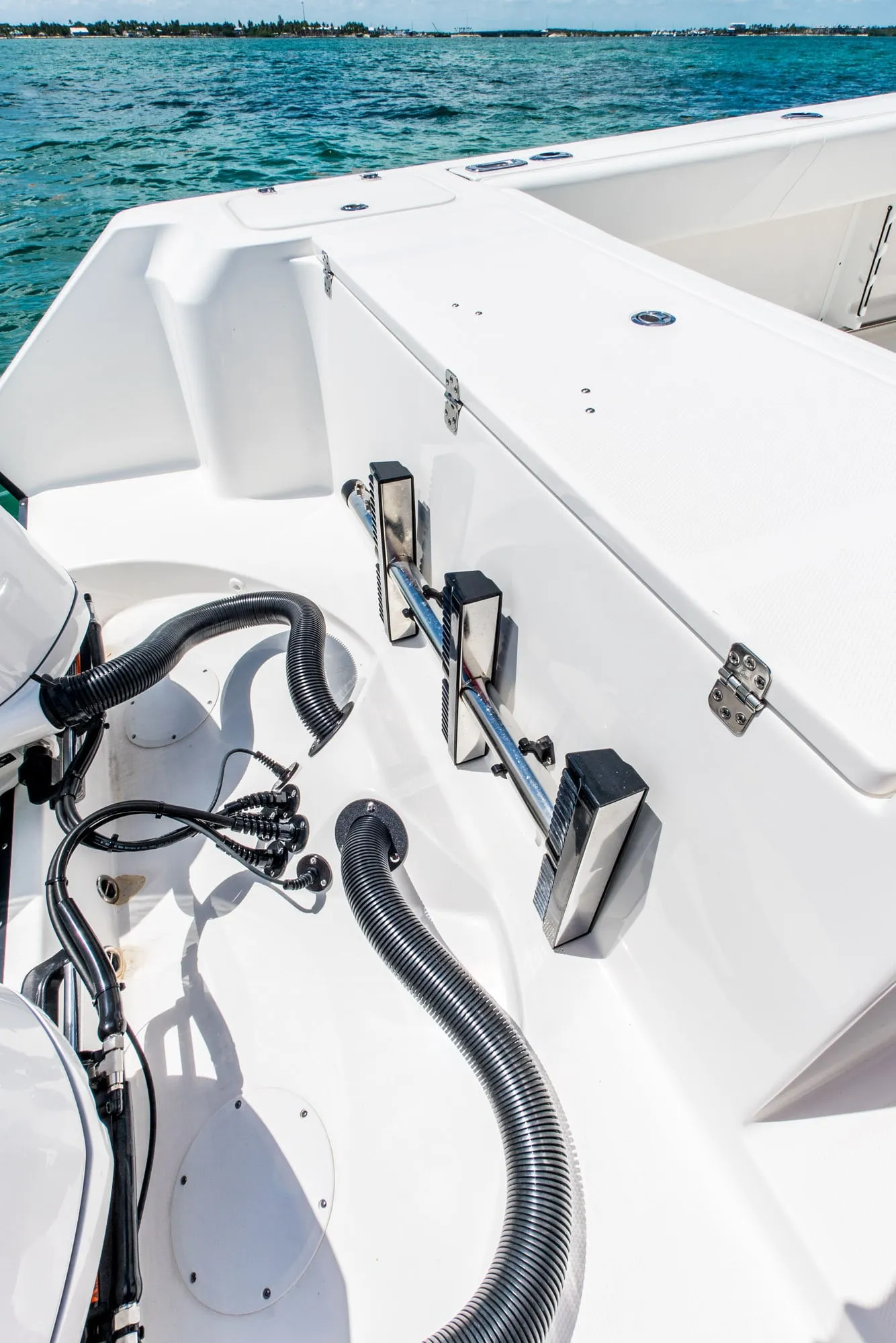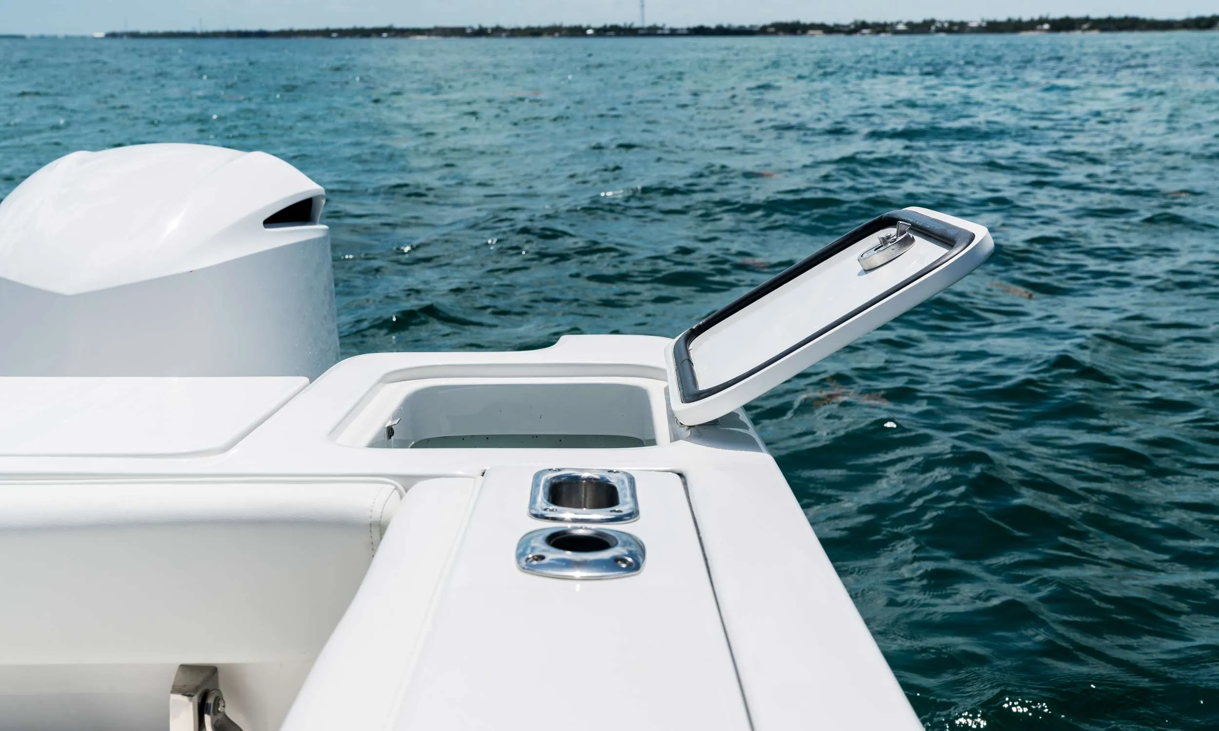 Il modello 325CC offre una vasta gamma di portacanne e vani portaoggetti per tutte le tue avventure in mare aperto. La pesca a traina diventa facile.
