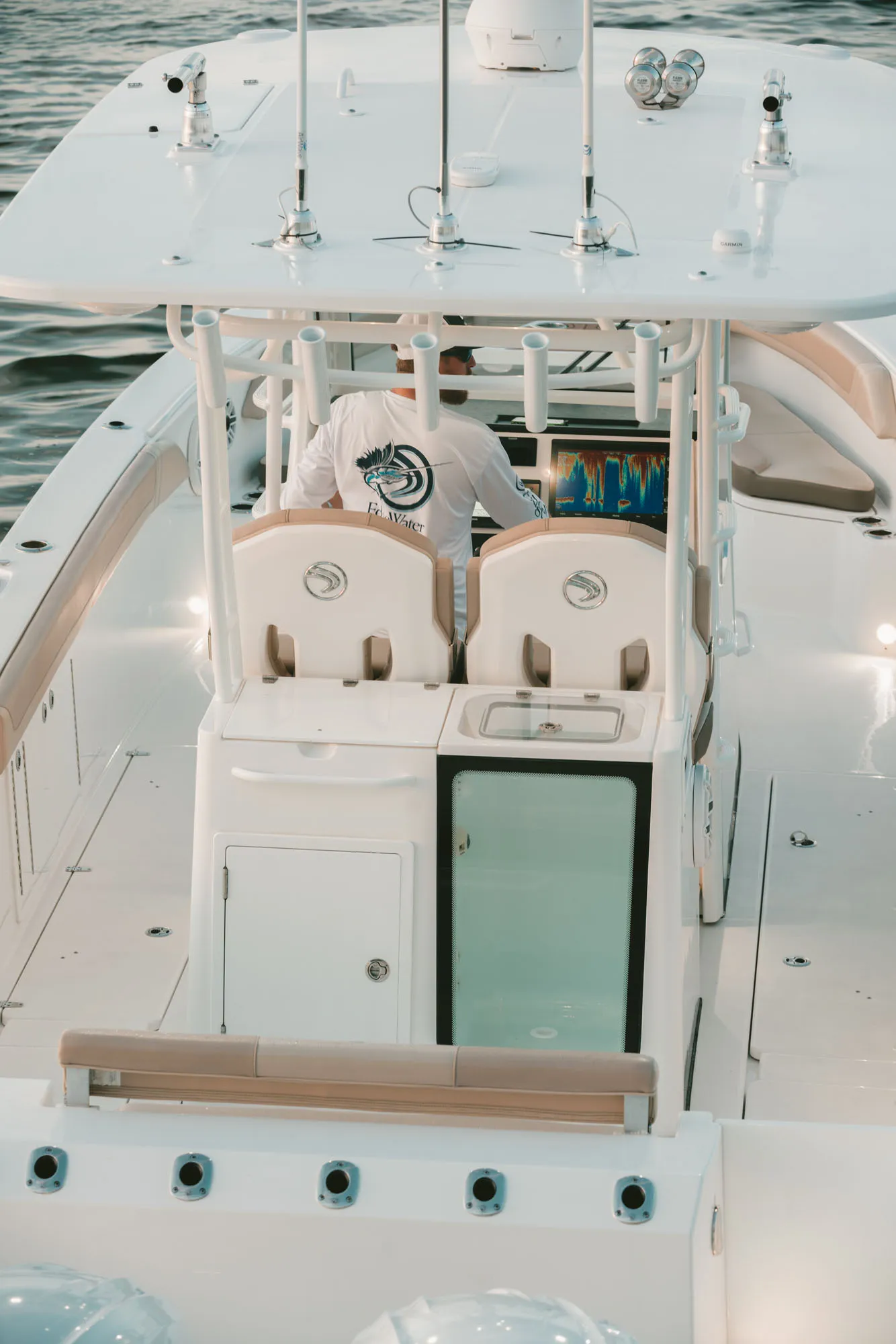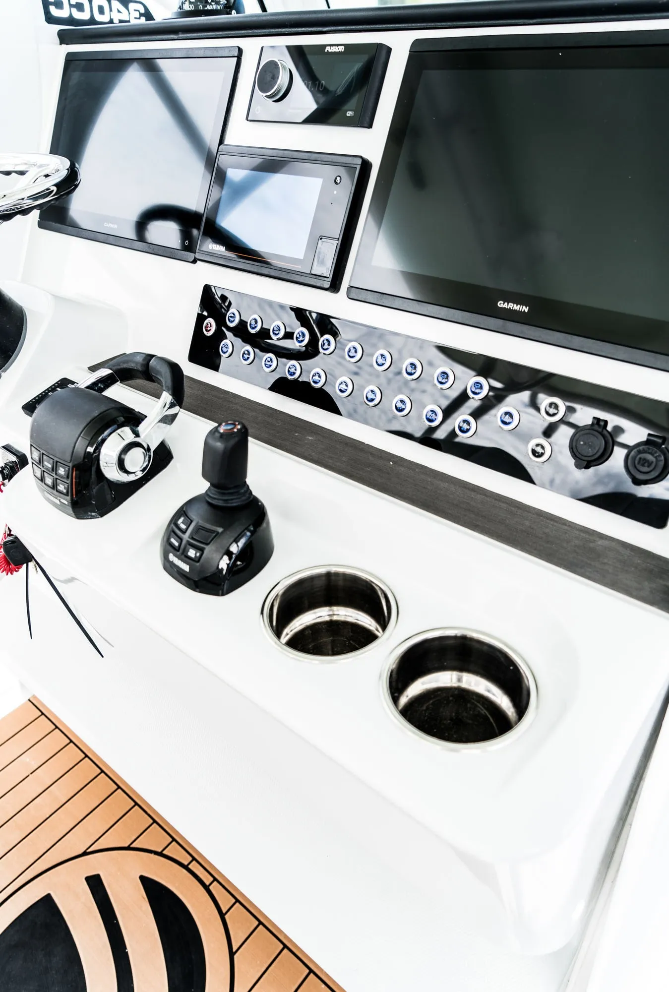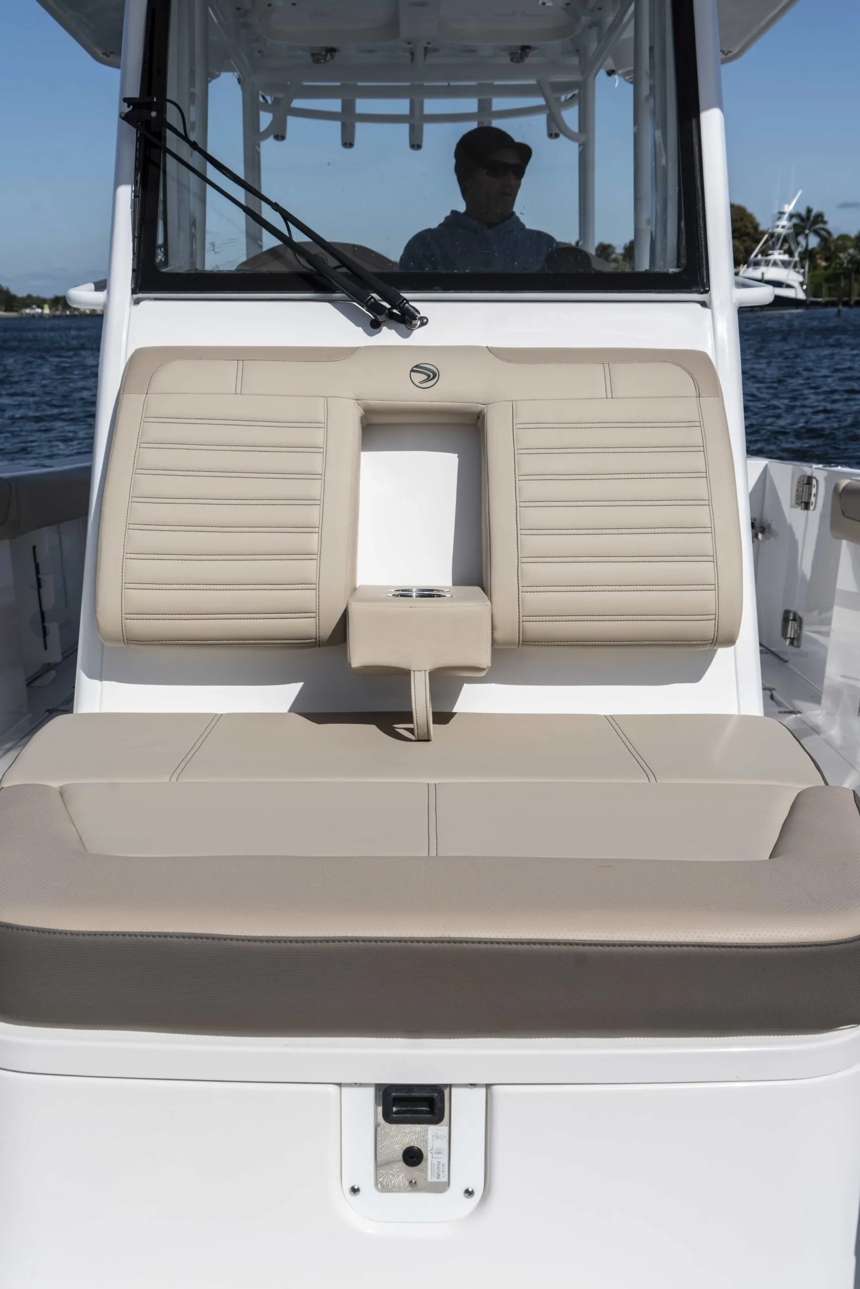 Avevamo un obiettivo specifico: il primo modello da 34 piedi pensato davvero per il pescatore e la famiglia. Il 340CC ha un rapporto lunghezza-larghezza ottimizzato per una barca da pesca per famiglie con scafo a V profonda. Abbiamo creato un gradino di visibilità integrato che si ripiega nella base del sedile del timone. Una volta aperto, consente a chiunque di guidare comodamente la barca.