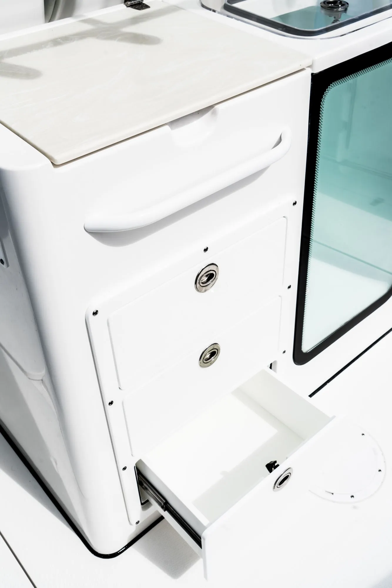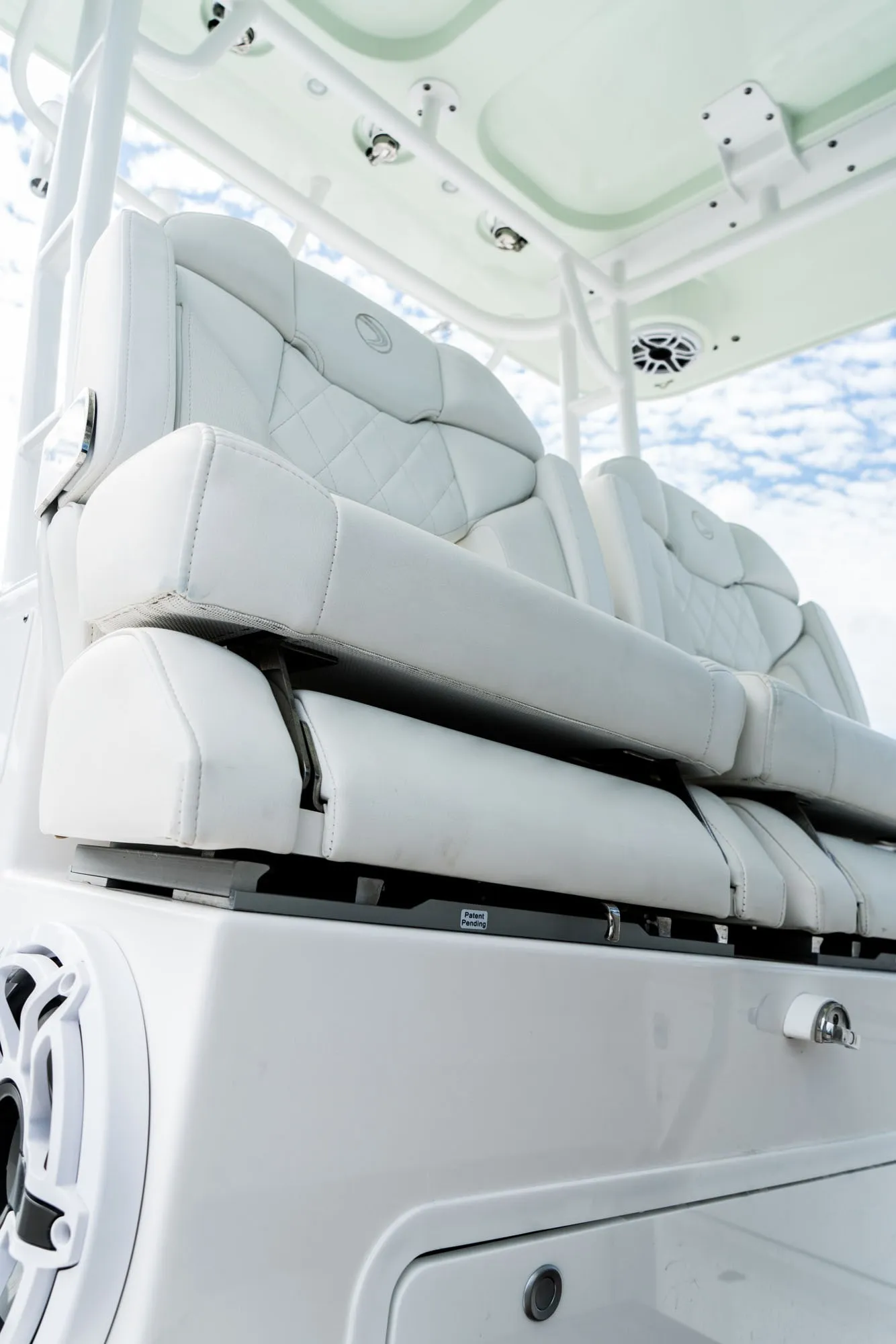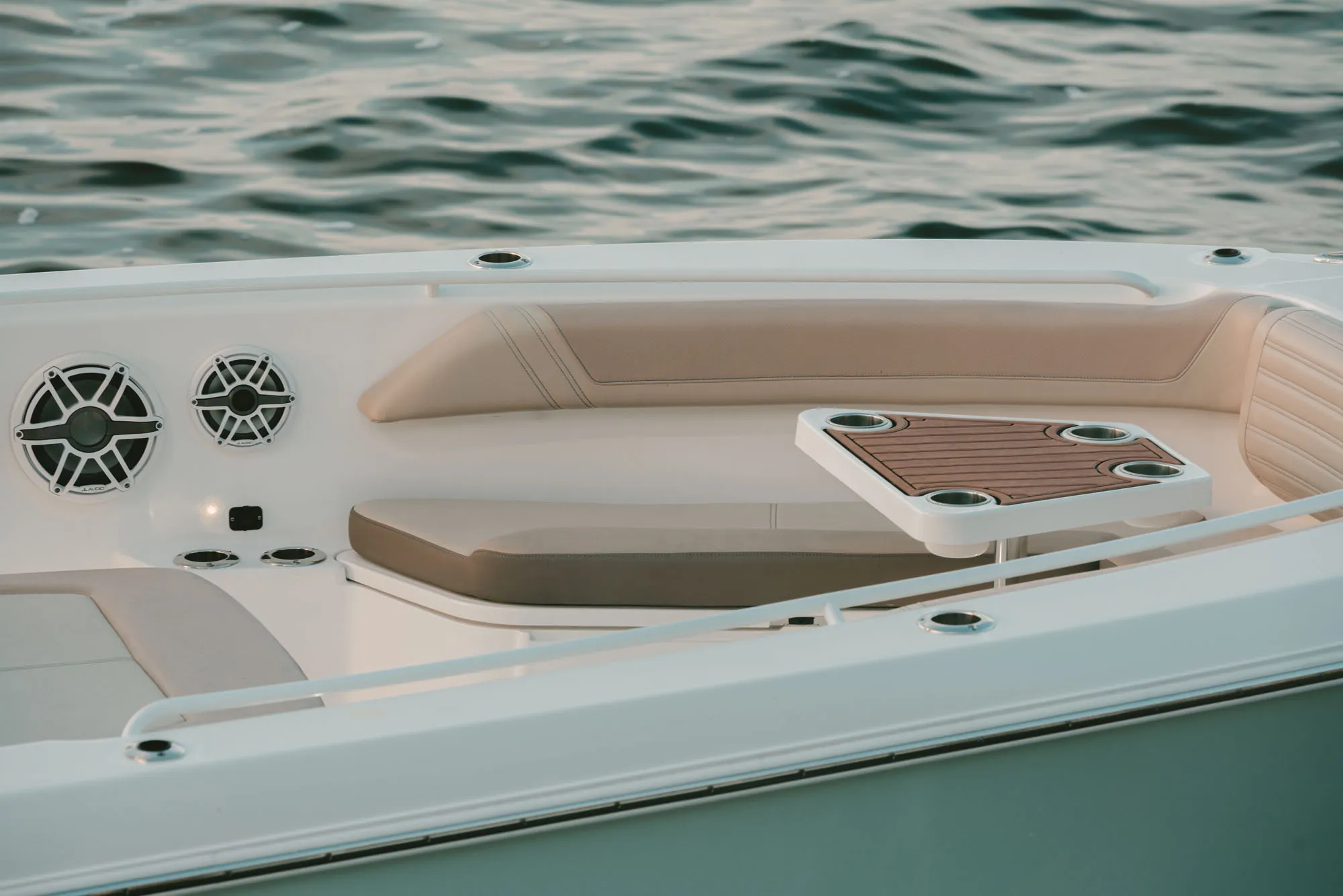 Avevamo un obiettivo specifico: il primo modello da 34 piedi pensato davvero per il pescatore e la famiglia. Il 340CC ha un rapporto lunghezza-larghezza ottimizzato per una barca da pesca per famiglie con scafo a V profonda. Abbiamo creato un gradino di visibilità integrato che si ripiega nella base del sedile del timone. Una volta aperto, consente a chiunque di guidare comodamente la barca.