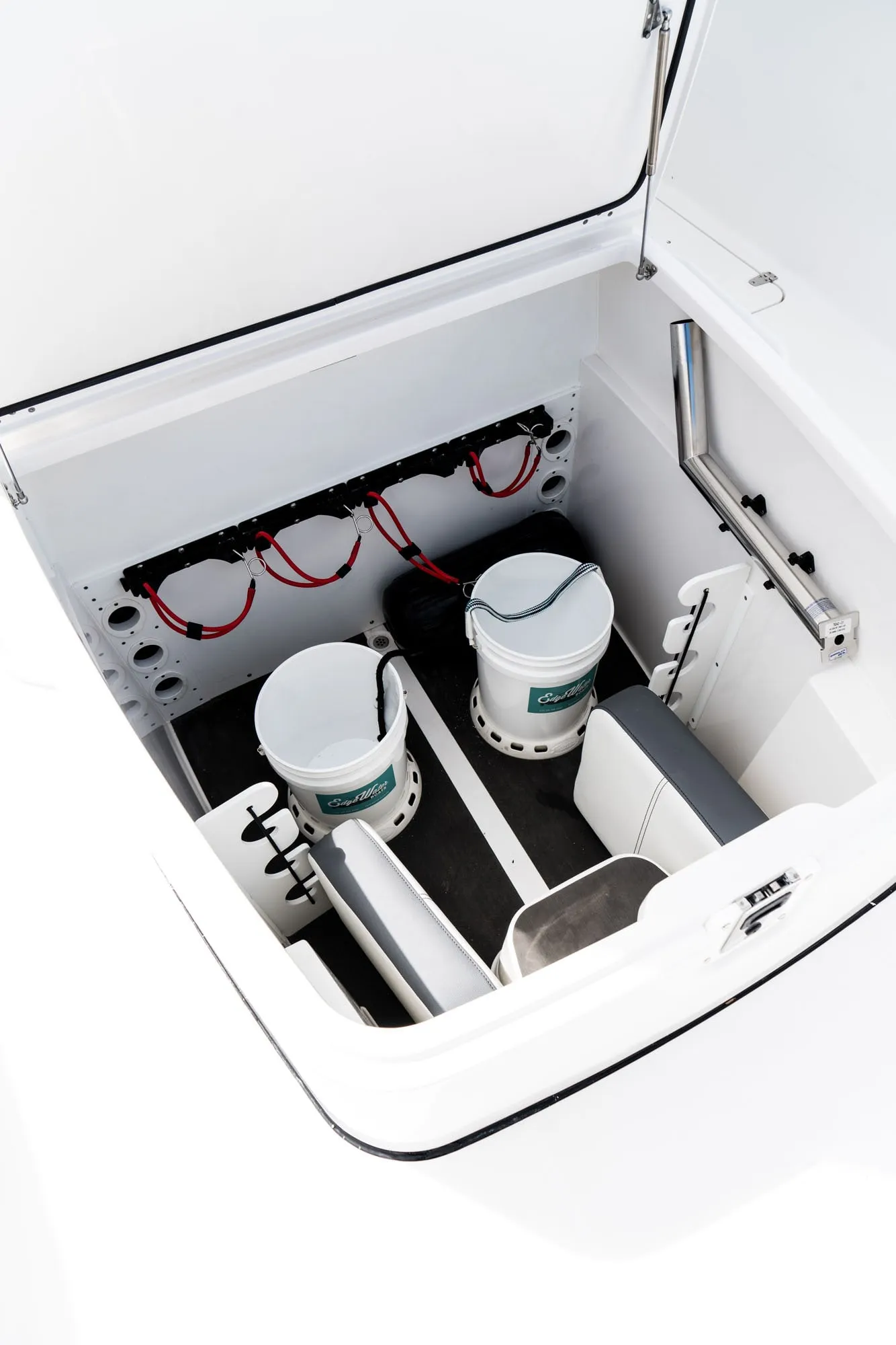 Lo spazio di stivaggio è fondamentale per la famiglia. Sotto il sedile anteriore si trova un ampio spazio di stivaggio per attrezzatura, bombole o parabordi, secchi, tavolo di prua e schienali anteriori. È una barca da 34 piedi con comfort di 40-50 piedi.