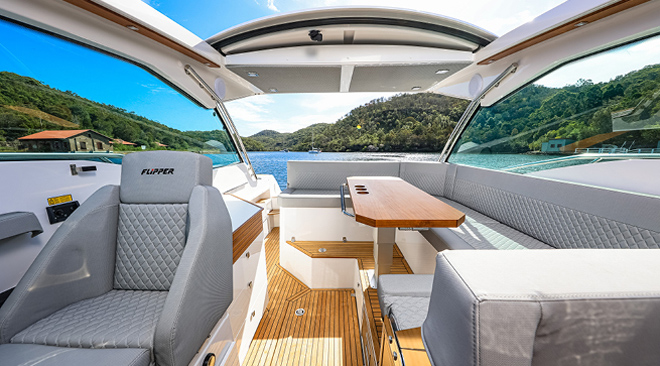Quando si tratta di esperienza di navigazione, le imbarcazioni Flipper e i motori Mercury sono una coppia vincente. Ottimizzare le imbarcazioni Flipper per i motori Mercury già in fase di progettazione è la chiave per un’eccellente guidabilità e bassi livelli di rumorosità. La manovrabilità è semplicissima e l’ergonomia eccellente. Il plotter Glass Bridge opzionale consente di visualizzare tutti i dati del motore e di guida su un unico schermo. Il trim attivo Mercury garantisce che i motori siano sempre impostati al livello corretto. Questo consente di risparmiare carburante e rende la guida facile e piacevole.
